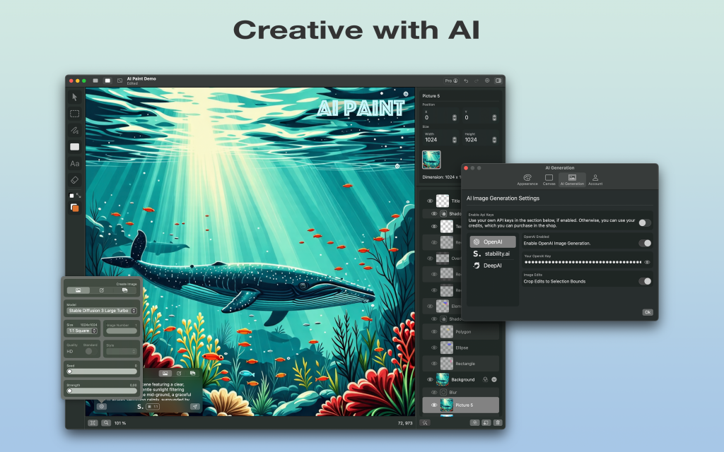 Our goal was to develop a superior editor for AI-generated images. We recognized the need for a tool that balances ease of use with advanced capabilities, and so our Paint Program was born.
